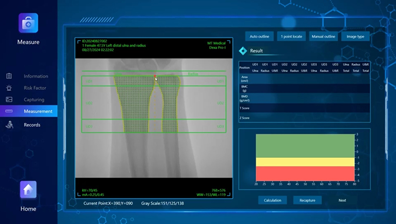 超聲骨密度儀軟件:品源醫(yī)療的超聲骨密度儀軟件具有多種優(yōu)勢(shì)。BMD-A系列超聲骨密度儀軟件搭載了不同年齡段的專(zhuān)用數(shù)據(jù)庫(kù),包括少年兒童數(shù)據(jù)庫(kù)(0-12 歲)、青少年數(shù)據(jù)庫(kù)(12-20 歲)、成年人數(shù)據(jù)庫(kù)(20-80 歲)、老年人數(shù)據(jù)庫(kù)(80-100 歲),還集成了涵蓋亞洲人、非洲人、歐美人群等的參考數(shù)據(jù)庫(kù),能夠滿(mǎn)足0歲至100歲各年齡段、多種族人群的檢測(cè)需求。軟件可自動(dòng)分析檢測(cè)數(shù)據(jù),生成個(gè)性化報(bào)告,輔助醫(yī)生制定診療方案,且能與醫(yī)療機(jī)構(gòu)HIS/PACS對(duì)接,實(shí)現(xiàn)檢測(cè)數(shù)據(jù)自動(dòng)上傳、患者自動(dòng)化管理。此外,軟件還能體現(xiàn)T值和Z值,數(shù)據(jù)和圖像一體化呈現(xiàn)。