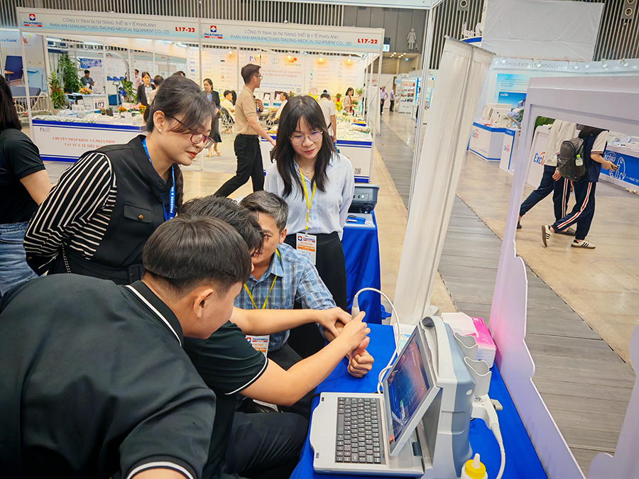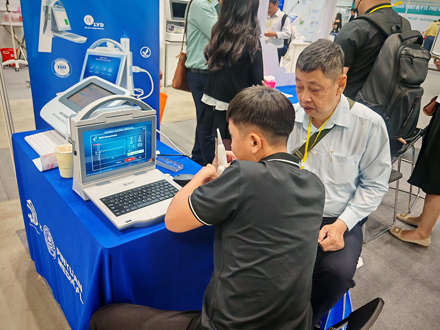展會期間,品源醫(yī)療展臺憑借清晰的功能分區(qū)與沉浸式互動體驗(yàn),成為展會人氣最旺的展臺之一。展臺以 “精準(zhǔn)檢測?守護(hù)健康” 為主題,精心劃分產(chǎn)品體驗(yàn)區(qū)、技術(shù)交流區(qū)與合作洽談區(qū),通過 “現(xiàn)場演示 + 案例分享 + 一對一咨詢” 的立體化互動模式,與越南醫(yī)療機(jī)構(gòu)、經(jīng)銷商、行業(yè)專家展開多維度深度溝通,為后續(xù)中越醫(yī)療合作奠定堅實(shí)基礎(chǔ)。
